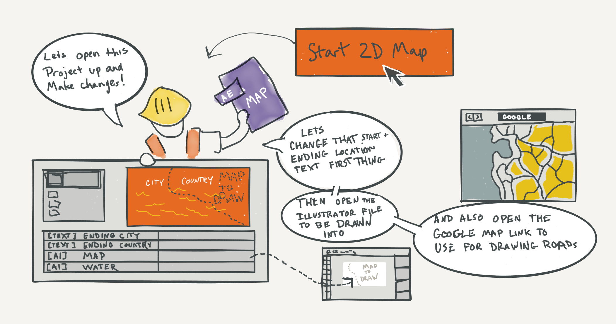 Again, this code isn't life changing, but it streamlines the process immensely and reduces the cognitive load of "what do I do next?" All the files that need to be open are opened for the user; all possible automated changes are made. At this point in the process, the only next step is to...draw the map.